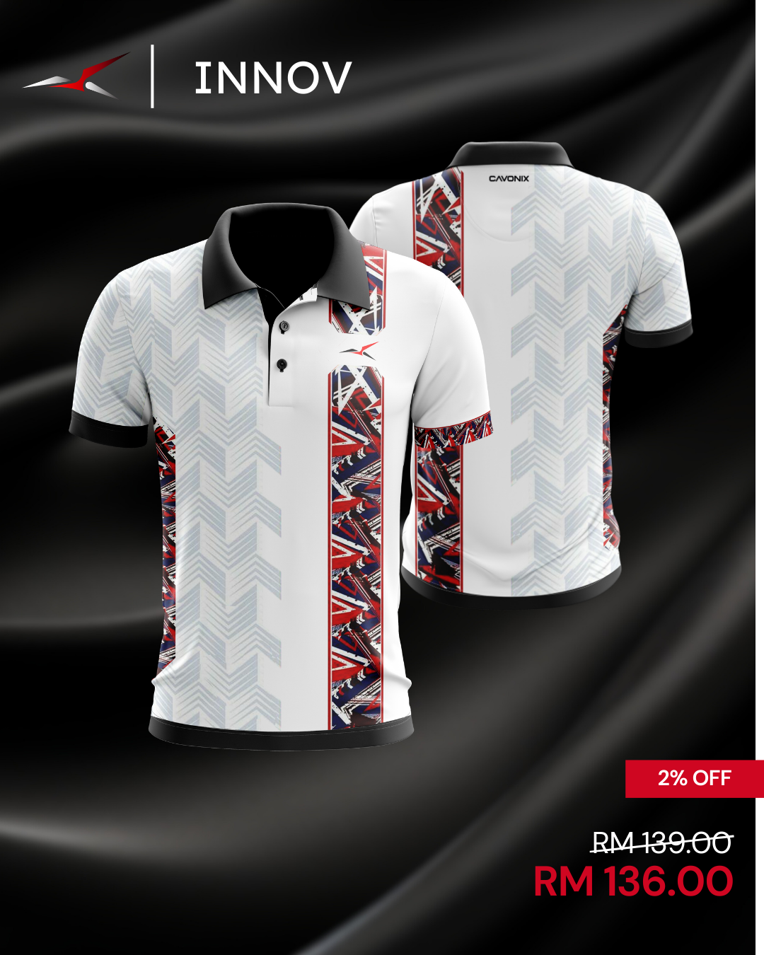 Blending modern geometry with cultural elements, featuring a white base with subtle chevron patterns and bold tribal-inspired vertical accents in red, blue, and black. The black collar and sleeve trims add a sleek contrast, making it a stylish yet sophisticated choice for those who appreciate tradition with a contemporary twist.